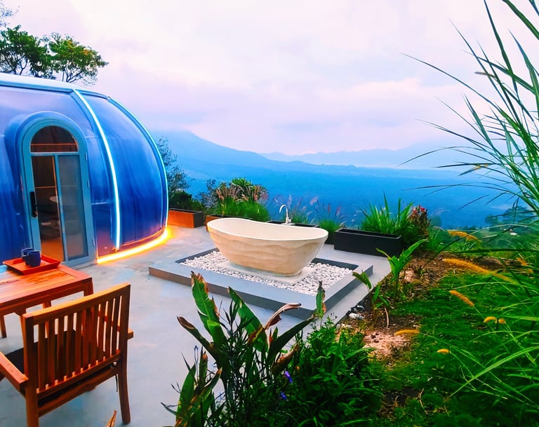Breathe the cool highland air as the Kintamani sunrise unfurls over Lake Batur. Choose a modern Crystal Nest dome for panoramic views and private jacuzzi moments, or a handcrafted Uma Kayun wooden sanctuary for a soulful, timeless retreat. Soon, our signature resort (opening 2028) will offer elevated stays and bespoke experiences that celebrate this extraordinary place.